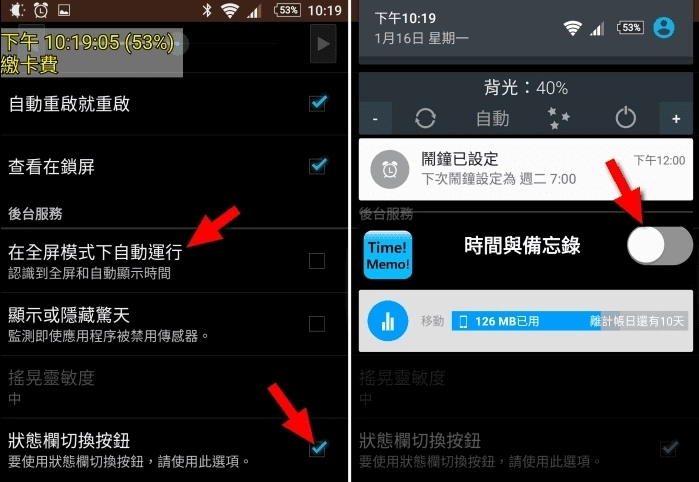 要是不想随时随地都看到它,开启「全屏模式自动运行」功能,或者打开「状态栏切换按钮」,就能在不需要的时候手动把它关掉啦!