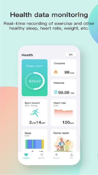 借助手环,该应用能够监测用户的睡眠质量与心率波动,并生成详尽的睡眠报告以及心率数据。