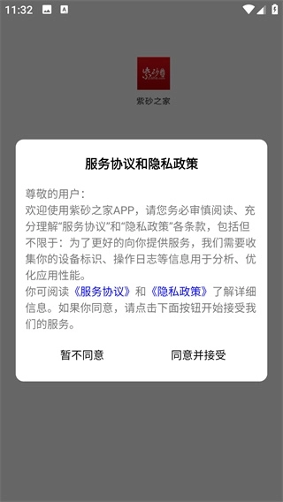 1、打开软件,阅读服务协议和隐私政策,点击同意并接收即可进入下一页。