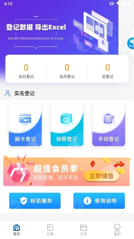 功能选择:用户登录后,可依据自身需求挑选对应的功能使用。比如,选用NFC识别或OCR拍照识别功能来完成证件信息的登记;使用数据导出功能把已登记的数据导出成Excel或PDF格式;借助数据同步功能将登记信息同步到电脑管理端等。