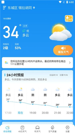 3、该软件更有智能语音播报功能,通过一键播放,天气信息轻松听;