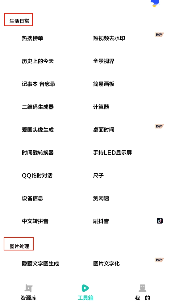 2、进入"工具箱",下滑有多款工具供你选择去使用。