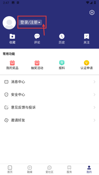 1、启动资讯服务类应用,点击底部导航栏的“我的”选项,进入个人中心界面。