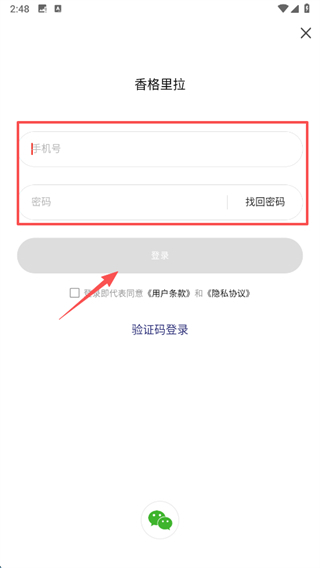 4、在该页面填写手机号与密码,勾选同意用户条款及隐私协议后,点击登录按钮,即可完成账号登录流程。