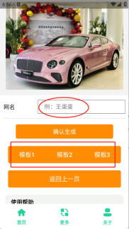 2、进入到首页输入网名,选择截图模板。