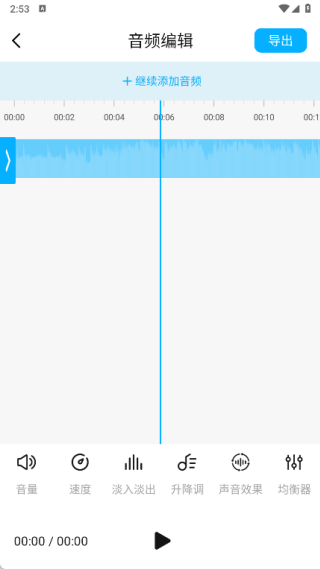 2、进入音频剪辑页面后,先选择需要处理的音频文件,接着进入编辑页面,在该页面可对音频执行速度调整、淡入淡出设置、升降调处理以及添加声音效果等操作。