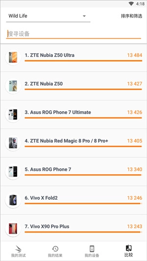 另外,用户还能查看其他手机的跑分情况,并开展对比。