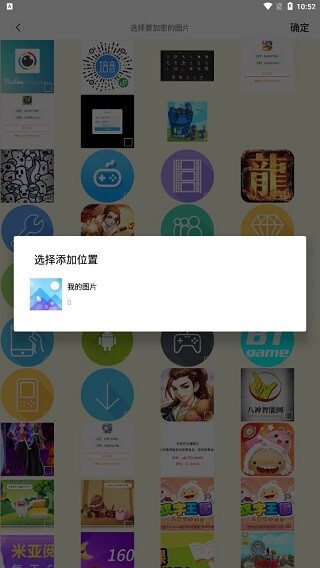4、选择要加密的图片,点击确定,之后选择分类。