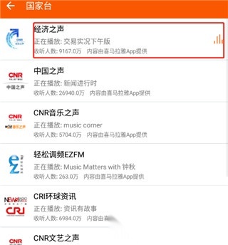 3.例如,点击“国家台”后,会立刻弹出大量电台服务,用户可以自行挑选心仪的电台进行在线收听。