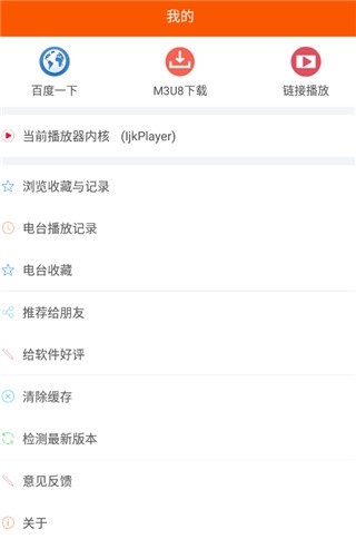 4.点击“我的”能够查看所有播放记录,同时还具备百度一下、m3u8以及链接播放等功能。