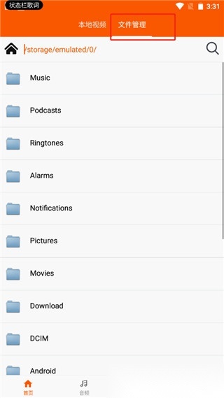 1.打开软件进入首页后,能看到本地视频和音乐内容,直接点击想要播放的文件,就能在线播放。