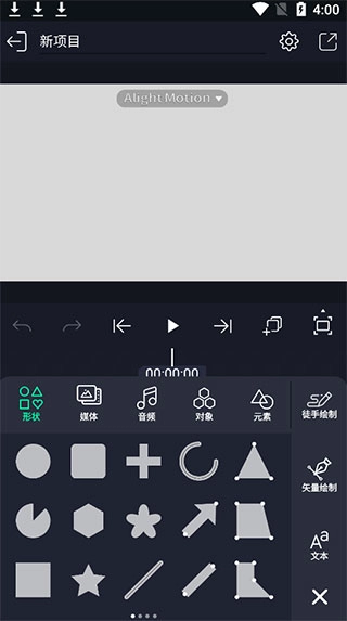 支持向你的项目里添加图片、视频、音频、图形、文字、绘画以及其他图层元素。