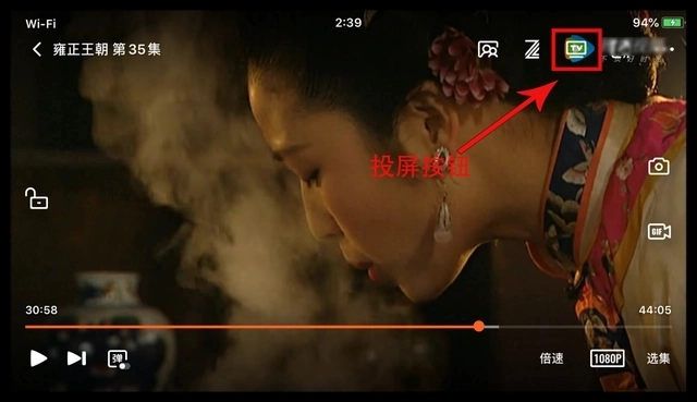 比如,打开任意一部电视剧后,在右上角会出现一个“TV”图标。只要保证手机和电视连接着同一个Wi-Fi网络,点击这个图标就能完成投屏,就算手机锁屏了也能继续播放。
