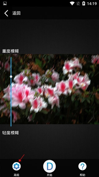 7、接着选择高级选项,依据照片的实际状况来调整到合适的模糊程度,之后重新启动去模糊的操作流程。