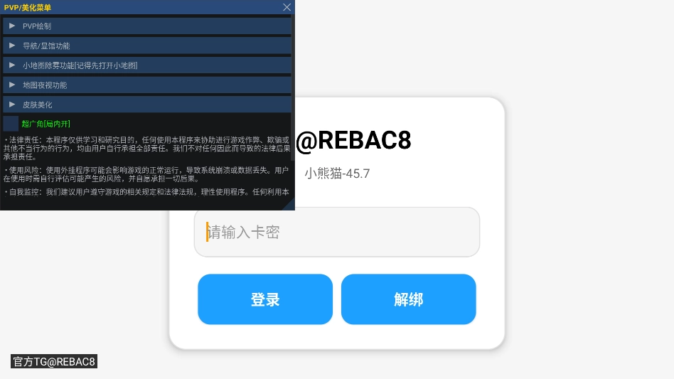 小熊猫辅助器免费最新版是专门针对《超自然行动组》开发的游戏辅助软件,内含丰富的辅助工具,其中不乏各类黑科技功能,能助力玩家提升游戏体验。该辅助提供PVP绘制、玩家显示、射线显示、近战武器范围标注、小地图导航及显馆、小地图除雾、地图夜视、皮肤美化等实用功能。