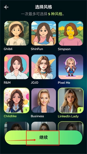 4、选择喜欢的风格后点击继续