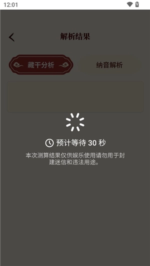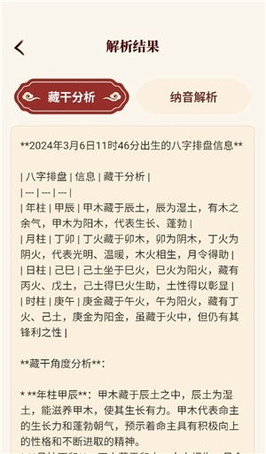 6、为用户展现藏干分析和纳音解析两种结果