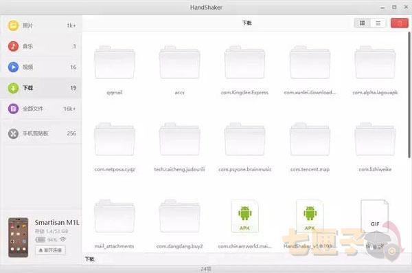 1、先连接好Wifi,在手机上完成安装后打开HandShaker应用。