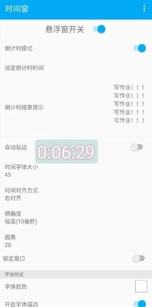 2、可以直接在手机上有一个小的悬浮窗来显示时间,悬浮窗时间显示效果可以随便创建和显示;