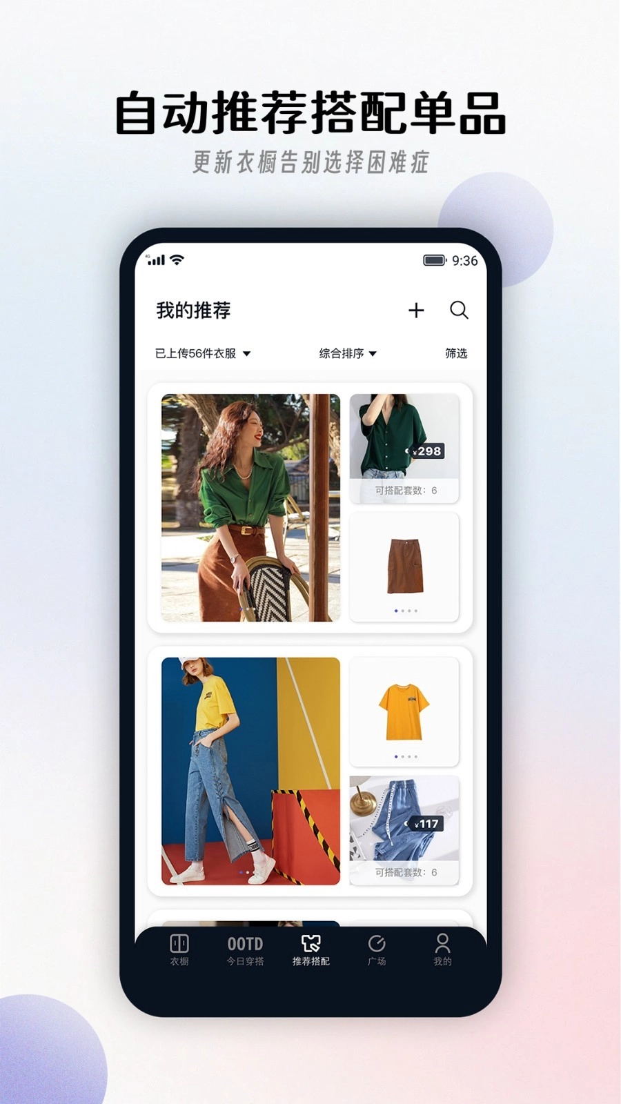 全自动匹配多种穿搭组合,告别选择困难,每一件单品都能有多种搭配方案;