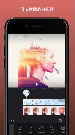 混合器的玩法相当厉害,可以将图片与图片,图片与视频叠加在一起,做出另外一种神奇的超现实主义效果。这一点和Enlight的照片混合功能,利用叠加图像,双曝光就能做出惊艳的iPhone艺术照有着异曲同工之妙,用好之后,你的视频一定可以不俗。