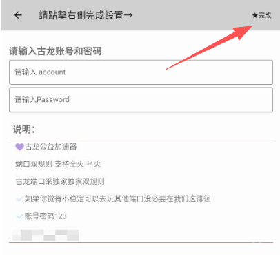 4、点击页面右上角的“完成”按钮即可(初始的账号和密码都是123)