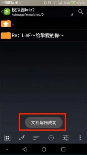 2、随后我们开展解压操作,能够看到文档解压成功的提示,这里就以“给挚爱的你”为例来进行说明。