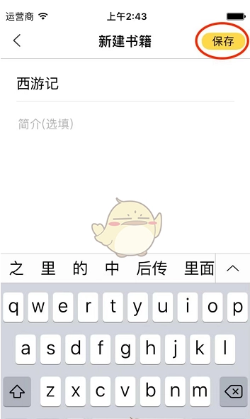 2、接着输入书名、简介(选填),点击保存即可完成新建。具体操作可参考下图: