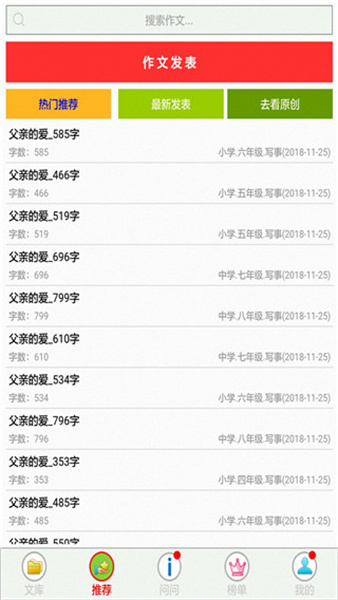 作文帮是一款专为广大学子打造的作文学习辅助平台软件,平台内汇聚了极为丰富的作文资源库。无论你需要创作写人、叙事、写景、状物类文章,还是议论文、说明文、日记等不同体裁或风格的作品,它都能提供专业且实用的指导与帮助。此外,作文帮还会依据用户所处的学习阶段,精准推送适配的优秀文选,助力用户提升美文赏析能力,从中汲取写作技巧与灵感,进而让自己也能写出高质量的佳作。