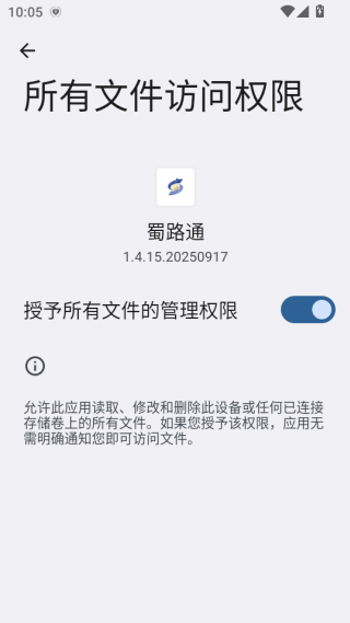 2、点击“去设置”后,找到文件管理权限的位置,点击打开按钮。