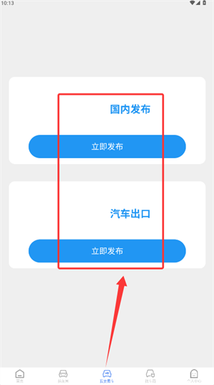 4、发布车辆时,需依据车辆用途选择“国内发布”或“出口”选项,随后点击“立即发布”按钮即可。