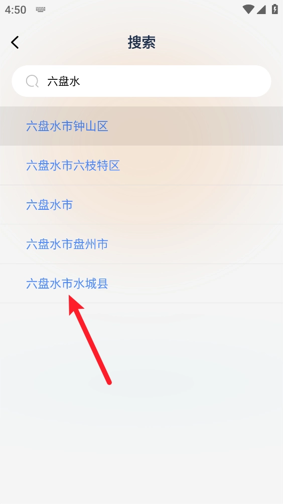 4、输入关键字或城市进行搜索需要查询的城市。