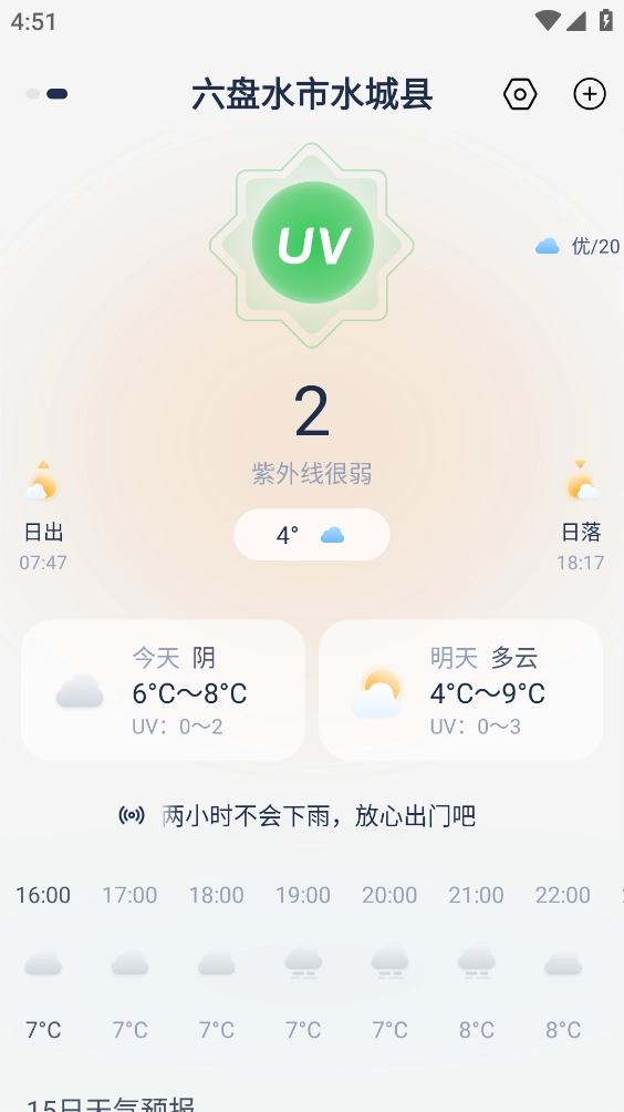 天气准预报,这款免费的精准天气预报查询工具,不仅能提供15天的天气趋势查询,方便大家提前规划行程,还会在恶劣天气到来前及时推送提醒,更支持添加桌面小组件,让你从容应对天气变化,出行更放心。