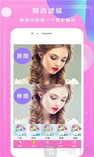 3.自然美妆:涵盖粉底、唇彩、腮红、鼻头高光等妆容打造,以及修眉、染发等细节处理,还可P出精致美妆效果。