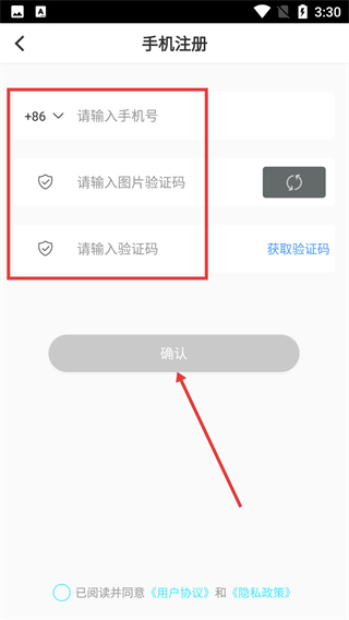 3、进入【手机注册】页面后,按顺序填写【+86-请输入手机号】、【请输入图片验证码】以及【请输入验证码】,全部填写完毕后点击【确认】按钮。