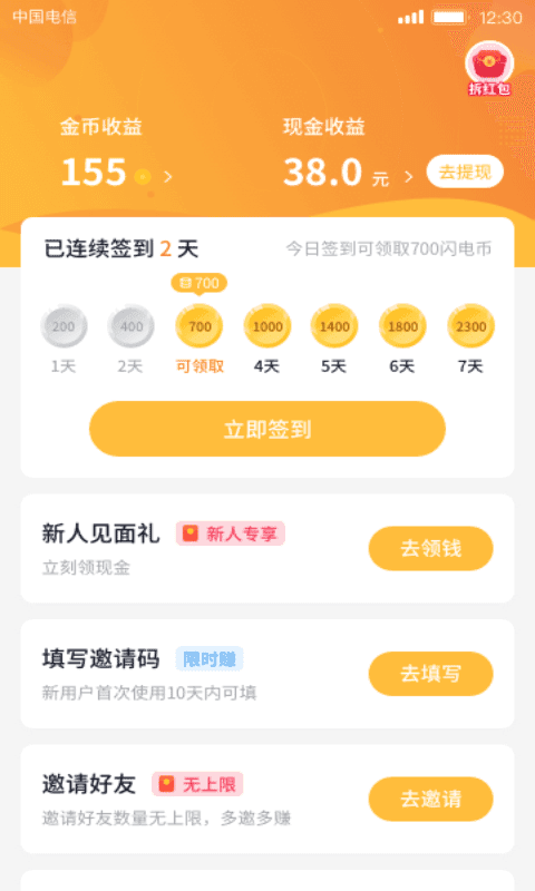 3、新人专享福利可在线领取,每日完成签到也能获得对应的金币奖励。