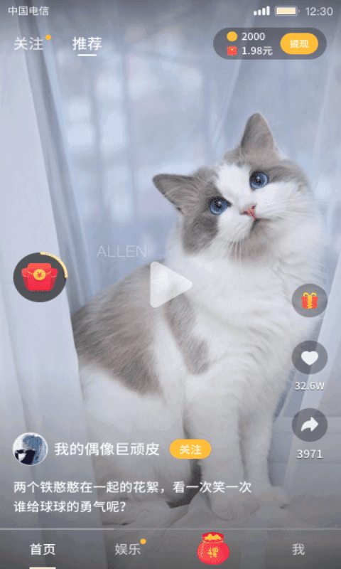 1、趣宠短视频红包版,海量趣味短视频实时推送,