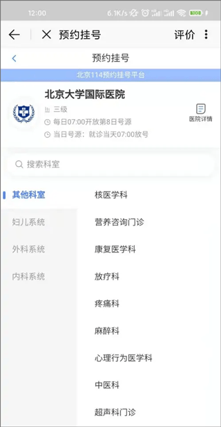 3、选择想要预约的科室并点击。