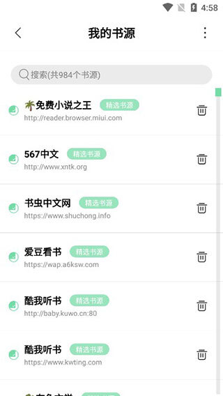5、这里聚合了980多个小说书源,用户能够按照自己的喜好选择导入。