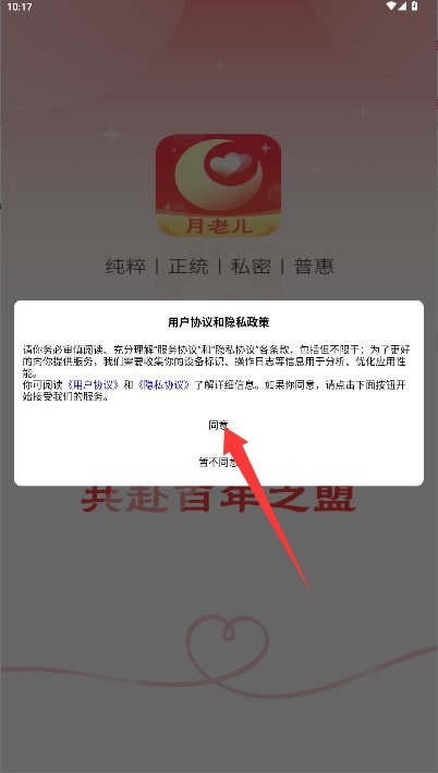 1、首次使用时,需仔细阅读用户协议和隐私政策,确认内容无误后,点击同意按钮即可进入登录界面。
