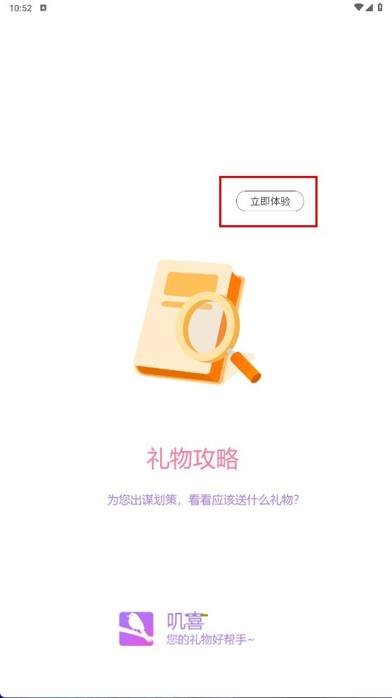 1、点击【立即体验】按钮,进入应用主界面,开启礼物攻略服务。