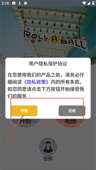 1、阅读《隐私政策》的相关条款后,点击用户隐私保护协议弹窗里的【同意】按钮,即可进入应用的主界面。