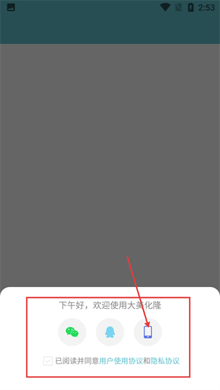 2、在登录选择界面,点击手机图标,即可进入手机号登录流程。