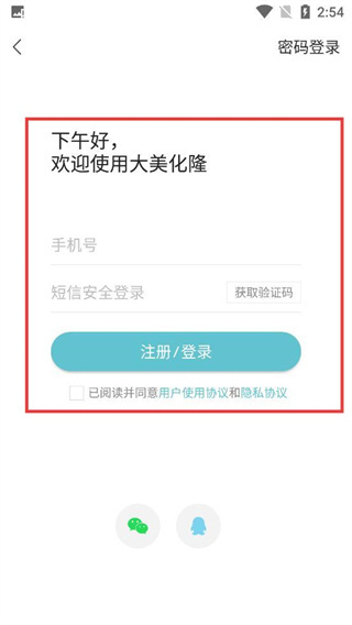 4、在密码登录页面,输入手机号与密码,勾选同意协议后点击【注册/登录】按钮,即可完成密码登录的操作。