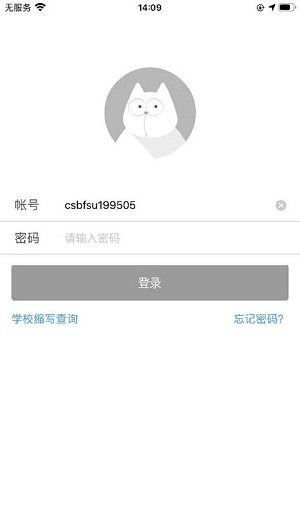 【登录账号】的格式为:学校英文缩写加上学号,例如:csbfsu199506(这里的csbfsu是学校英文缩写,199506是学号)。