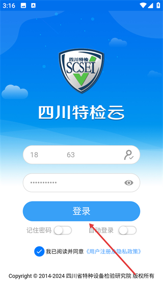 3、把信息填写完整并勾选好所需选项后,点击【登录】按钮,即可完成【四川特检云】账号的登录流程。