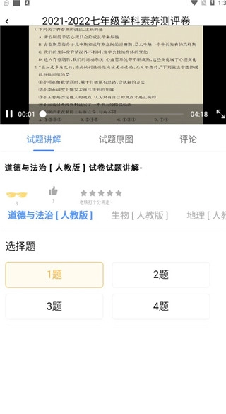 3、通过资源包能够查看卓育云相关试卷对应的试卷讲评视频。
