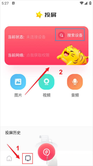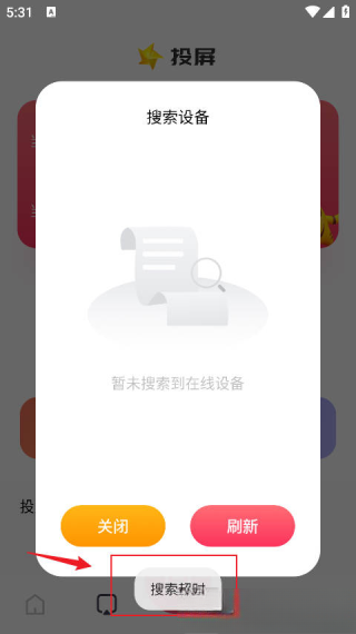 1.首先需要进入投屏模块,然后选择搜索设备。
