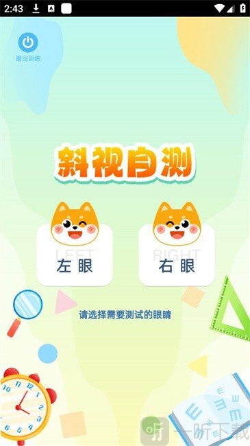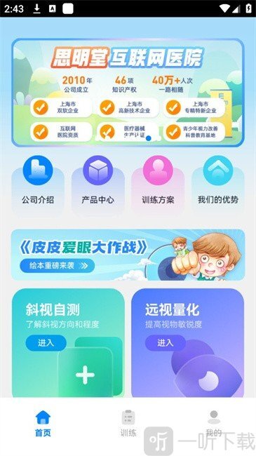 2. 进入软件后,可在【首页】或【训练】专刊中找到所需专题,此处以“斜视自测”为例。