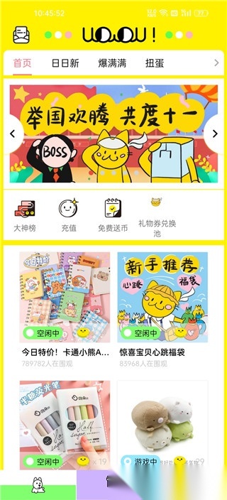 这款软件能让用户不用跑到线下抓娃娃店,就能轻松玩抓娃娃游戏、抽取各类潮玩娃娃;其他用户还能进入房间观看抓娃娃的过程,非常值得一试!